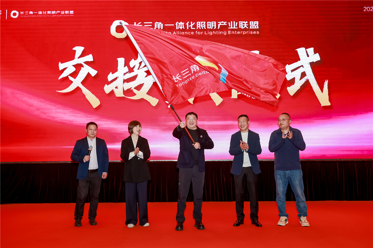 大会同期举办“长三角照明之夜”,现场举行长三角一体化照明产业联盟轮值主席交接旗仪式,顺利完成联盟工作交接,为区域产业协同发展注入新活力。